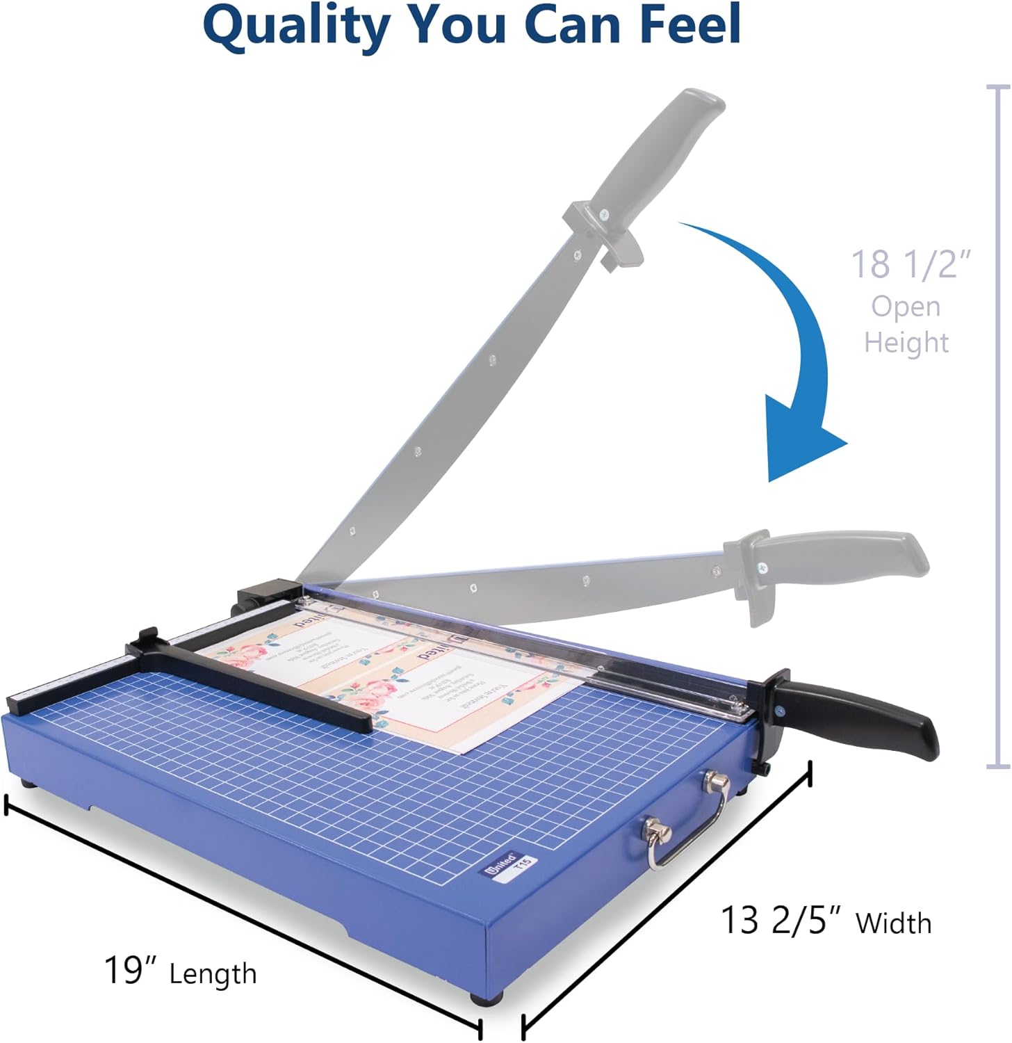 - PRECISION CUTTING: High-carbon steel guillotine cutter blade accurately cuts paper stacks up to 1/16” high or up to 15 sheets at a time. Solid steel paper cutter blade arm minimizes blade flex for comfortable and effortless paper trimming.