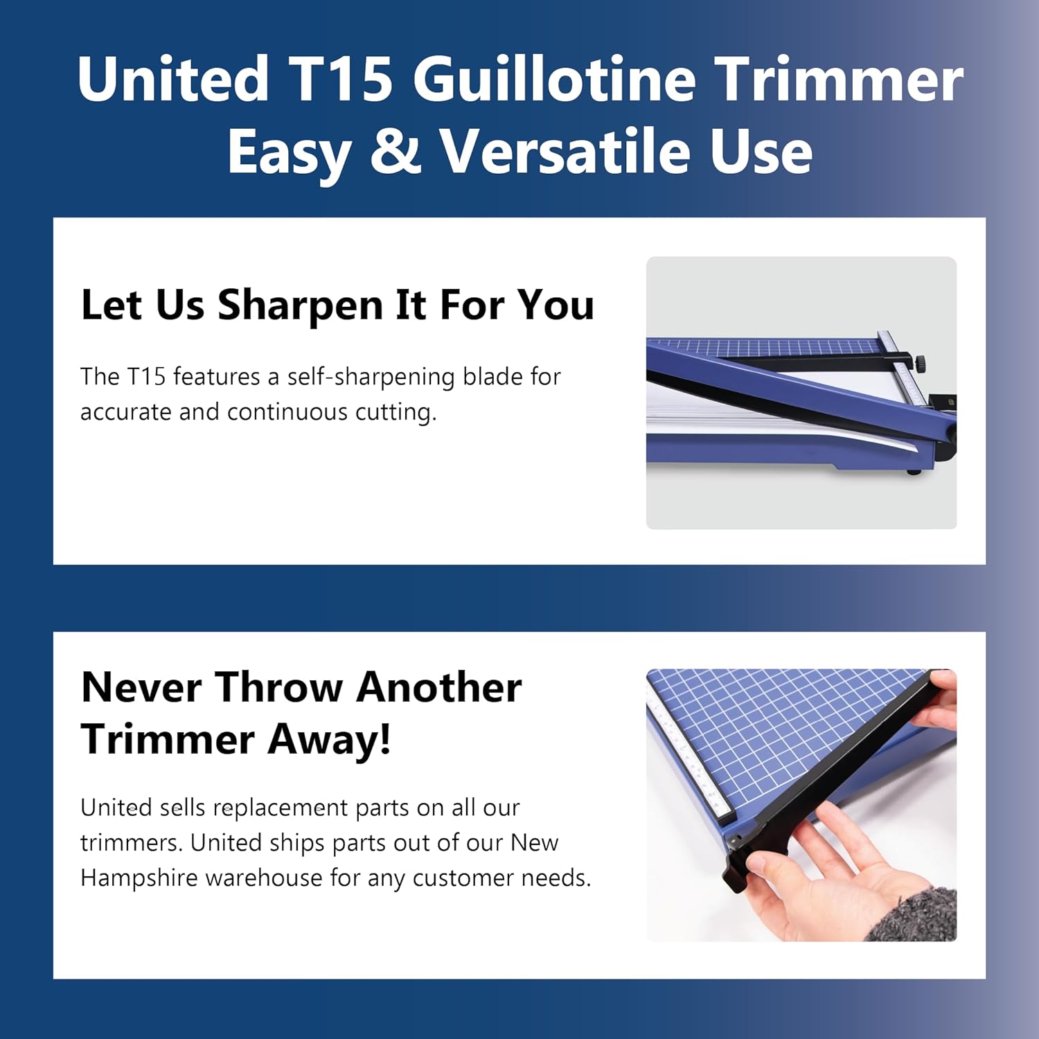 United Office Products T15 Commercial Guillotine Paper Trimmer, Sturdy Metal Base, 15" Cut Length, 15 Sheet Capacity, Paper Cutter for Offices, Schools and Crafts