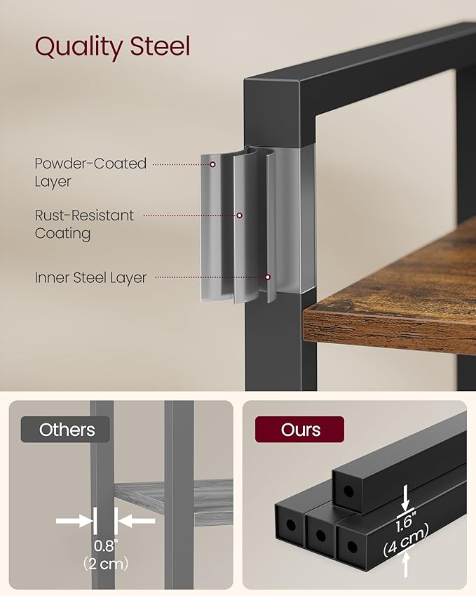 - Built to Last: A smart mix of quality particleboard and a sturdy steel frame allows this robust 4-tier bookcase to hold up to 88 lb, giving your items reliable support for years to come