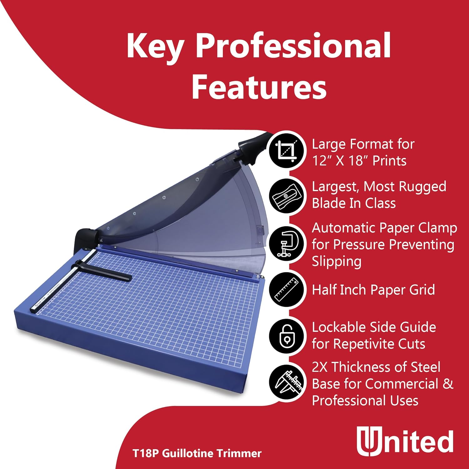 United Office Products T18P Professional Guillotine Paper Trimmer, Sturdy Metal Base, 18" Cut Length, 40 Sheet Capacity, Paper Cutter for Offices, Schools and Crafts