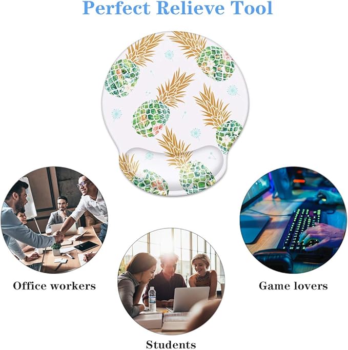 WAVEYU Pineapple Mouse Pad with Wrist Support, Cute Designed Mouse Mat with Wrist Rest for Women Girls, Comfortable Non-Slip Rubber Base Mousepad for Laptop, Computer, 9'' x 10'', Green Pineapple