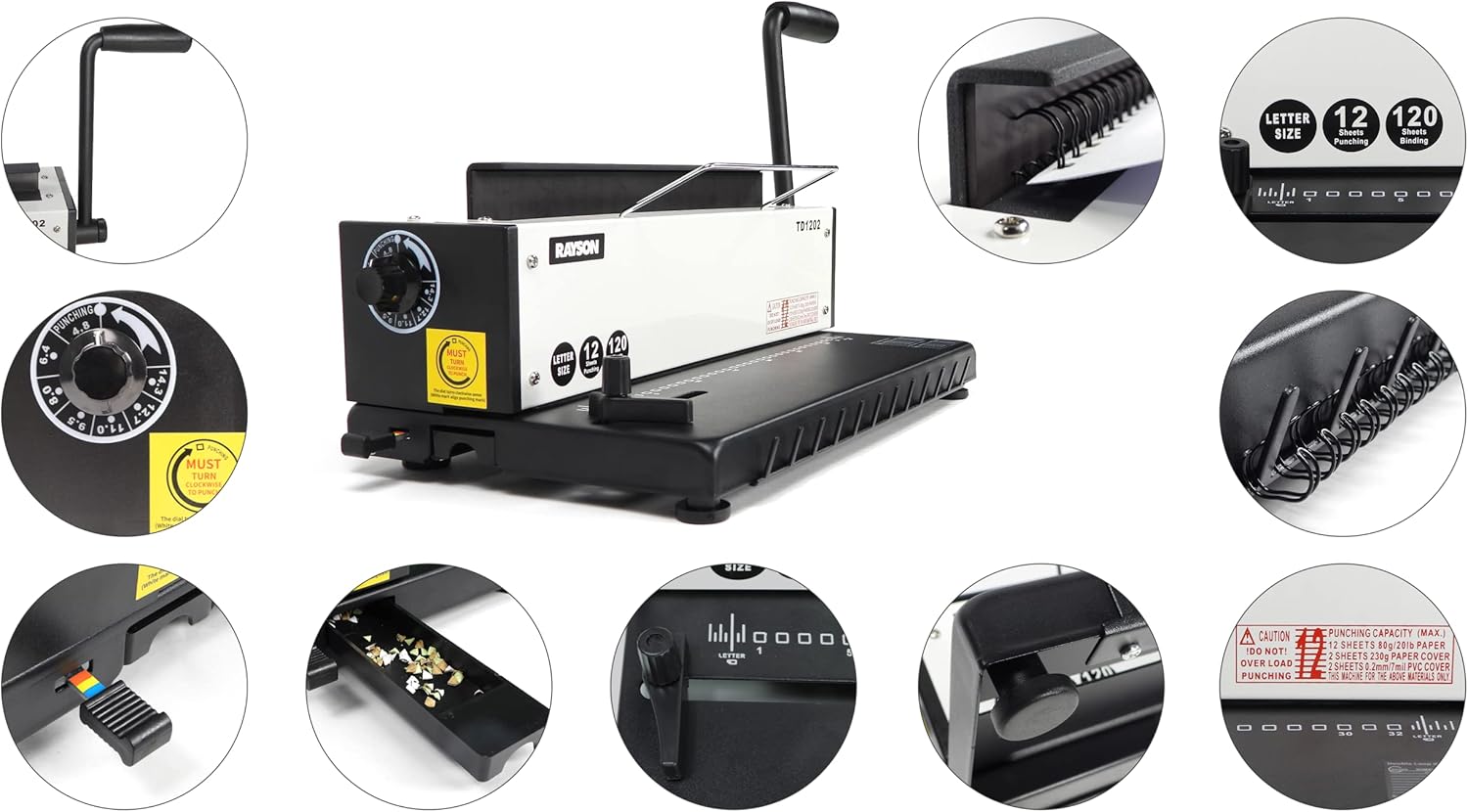 Rayson TD1202 Binding Machine, 3:1 Pitch Wire Binder, Punching 12 Sheets/Binding 120 Sheets with Sturdy Metal Construction