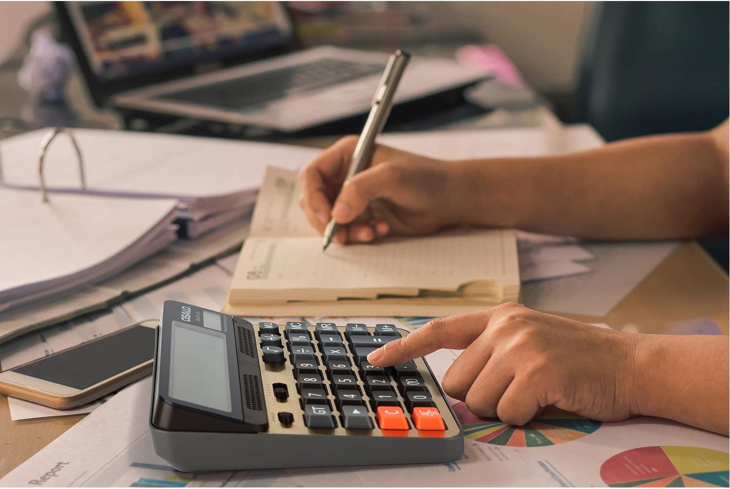 - 【Accounting Series】Silver panel with orange,blue and gray color buttons,vibrant color matching.The functions on the panel meet the needs of your accounting work and daily used.