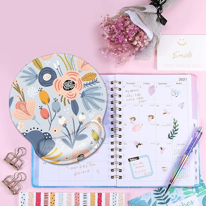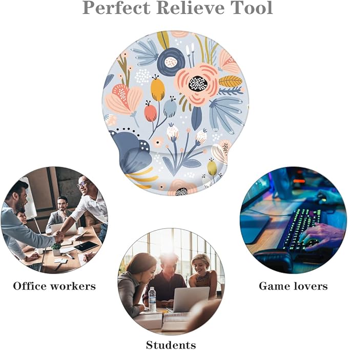 - Flower Round Mouse Pad: The top is made of durable polyester fabric, the smooth surface allows more accurate and fast mouse movement. The wrist support is made of soft rebound memory foam material, which is ergonomically designed to protect the wrist joint and reduce wrist fatigue and pain caused by the long time use of the mouse.