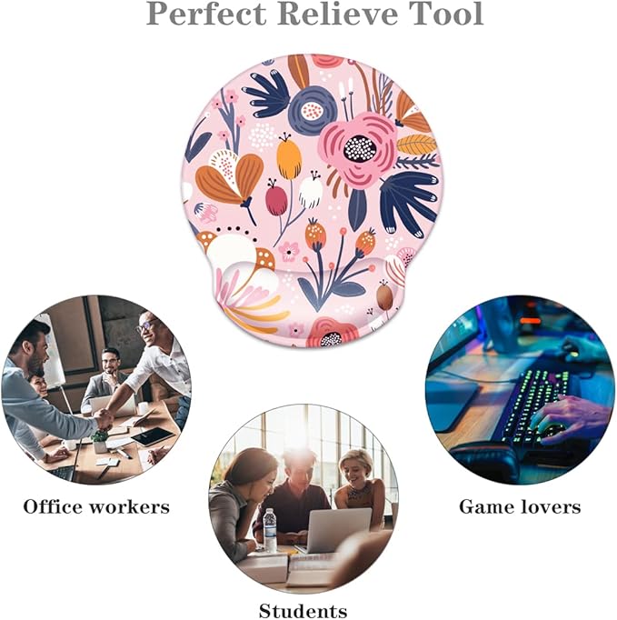 - Flower Round Mouse Pad: The top is made of durable polyester fabric, the smooth surface allows more accurate and fast mouse movement. The wrist support is made of soft rebound memory foam material, which is ergonomically designed to protect the wrist joint and reduce wrist fatigue and pain caused by the long time use of the mouse.