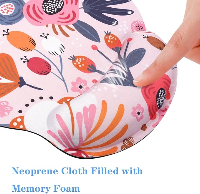 - Pretty Mouse Mat: The wrist support is made of soft rebound memory foam material, which is ergonomically designed to protect the wrist joint and reduce wrist fatigue and pain caused by the long time use of the mouse.