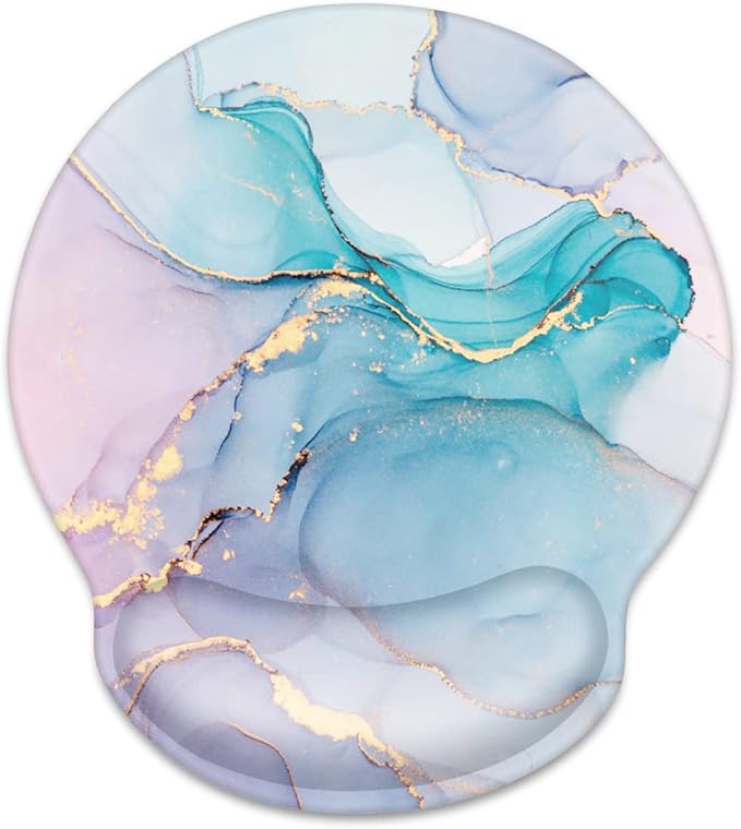 WAVEYU Ergonomic Mouse Pad with Wrist Support, Cool Round Mouse Mat, Non-Slip Rubber Base Mousepad for Laptop, Office Mouse Pad, Blue Marble