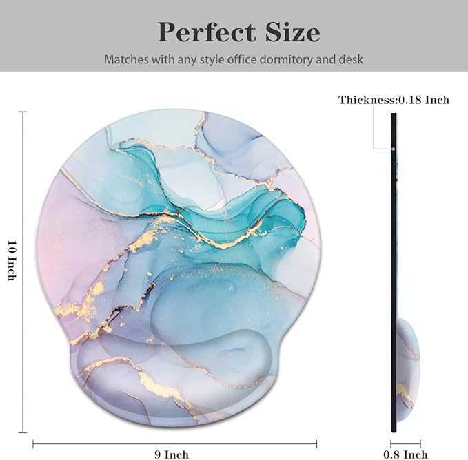 - Marble Mouse Pad for Women Men: Measure 10 x 9 x 0.18 Inch, wrist support part is 0.8 Inch, perfect size for work and game. Cute pattern design adds personality to your office, perfect for all style desktop, office, home, computer, keyboard and mice.