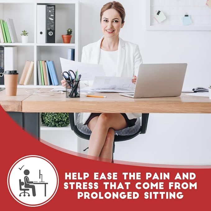 - Safe & Healthy Sitting - The seat pillow helps relieve pressure from your back or pelvic region while sitting for extended periods, also an ideal solution for people suffering from hemorrhoids, bed sores, broken tailbones, sciatica, coccyx pain, during pregnancies or post injuries.