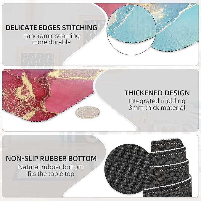 - 【Anti Slip & Stitched Edges】The soft and dense non-skid nature rubber base keeps this extending desk mouse pad firmly in place. Just immerse into your work or games without worrying about the annoying mouse pad movement. And the delicate stitched edges can prevent wear, deformation and degumming in prolonged use. Design for security and durability, and enhances the aesthetic and lifespan of the desktop mouse pad.