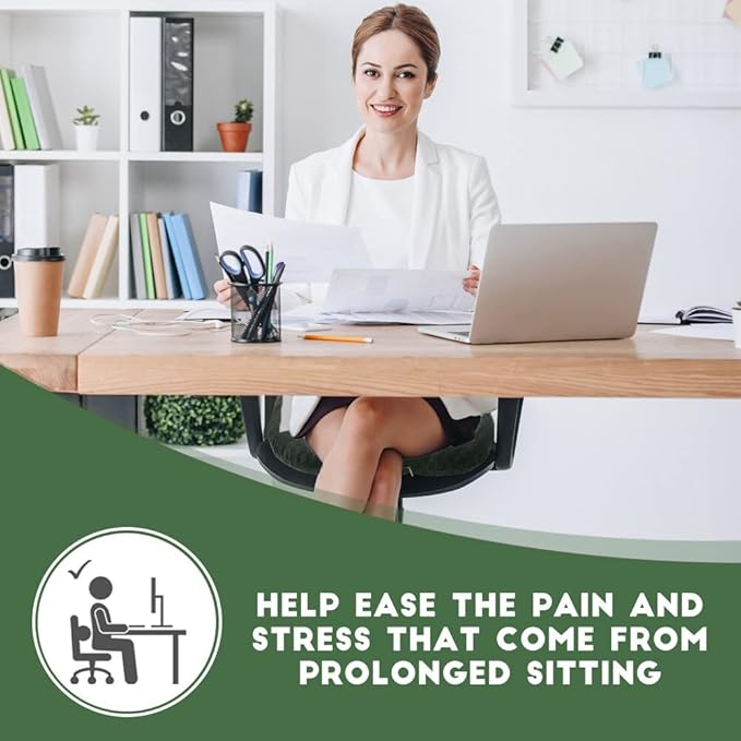 - Safe & Healthy Sitting - The seat pillow helps relieve pressure from your back or pelvic region while sitting for extended periods, also an ideal solution for people suffering from hemorrhoids, bed sores, broken tailbones, sciatica, coccyx pain, during pregnancies or post injuries.