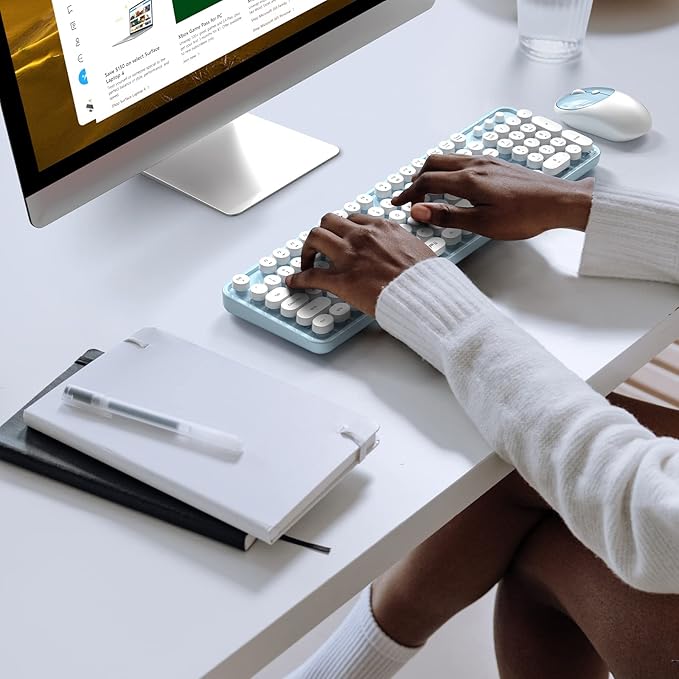 MOFII Wireless Keyboard and Mouse Combo, Computer Full Size 2.4G Plug and Play Wireless Typewriter Retro Round Keyboard and Mouse Set for Windows, Computer, Desktop, PC, Notebook - (Light Blue)
