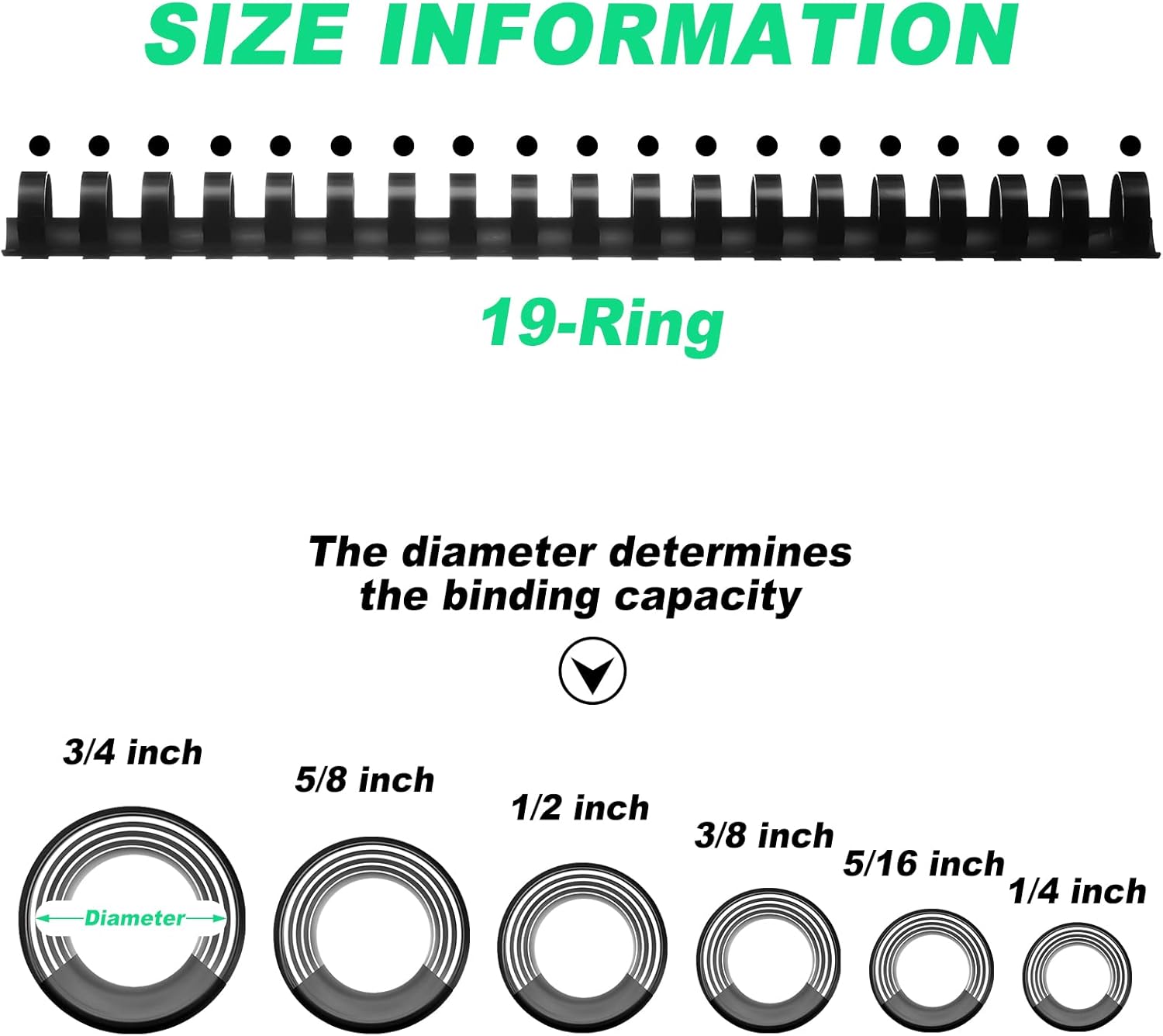 Yunsailing 150 Pack Plastic Binding Combs Plastic Binder Comb Ring 19 Ring Binding Spines Letter Size Spiral coils for Notebook Calendar(1/4 5/16 3/8 1/2 5/8 3/4 in,Black)