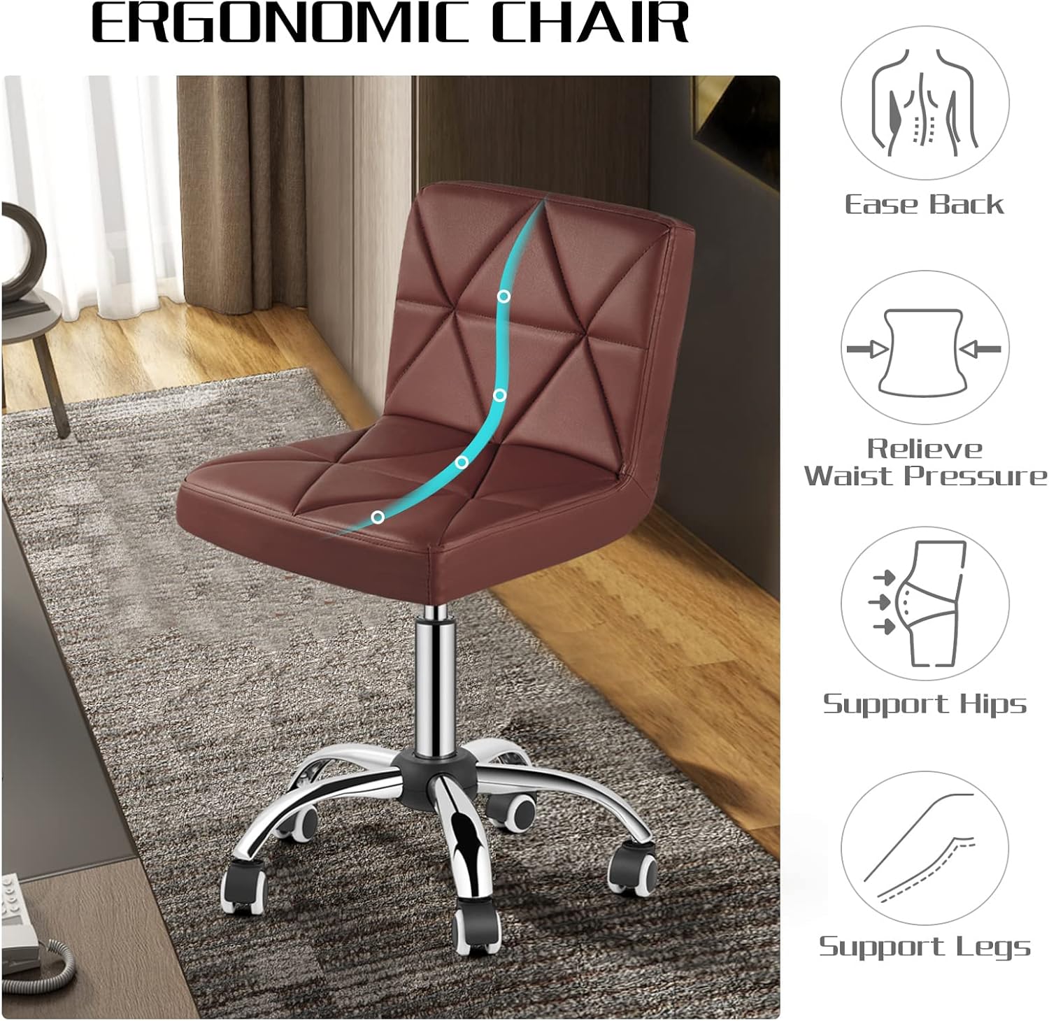 - ARMLESS DESK CHAIR - It is more convenient to use without the restriction of armrests. It can be pushed under the table at any time when not in use, saving space and keeping the room tidy. It is suitable for home, office, meeting room, barbershop, clinic, etc.