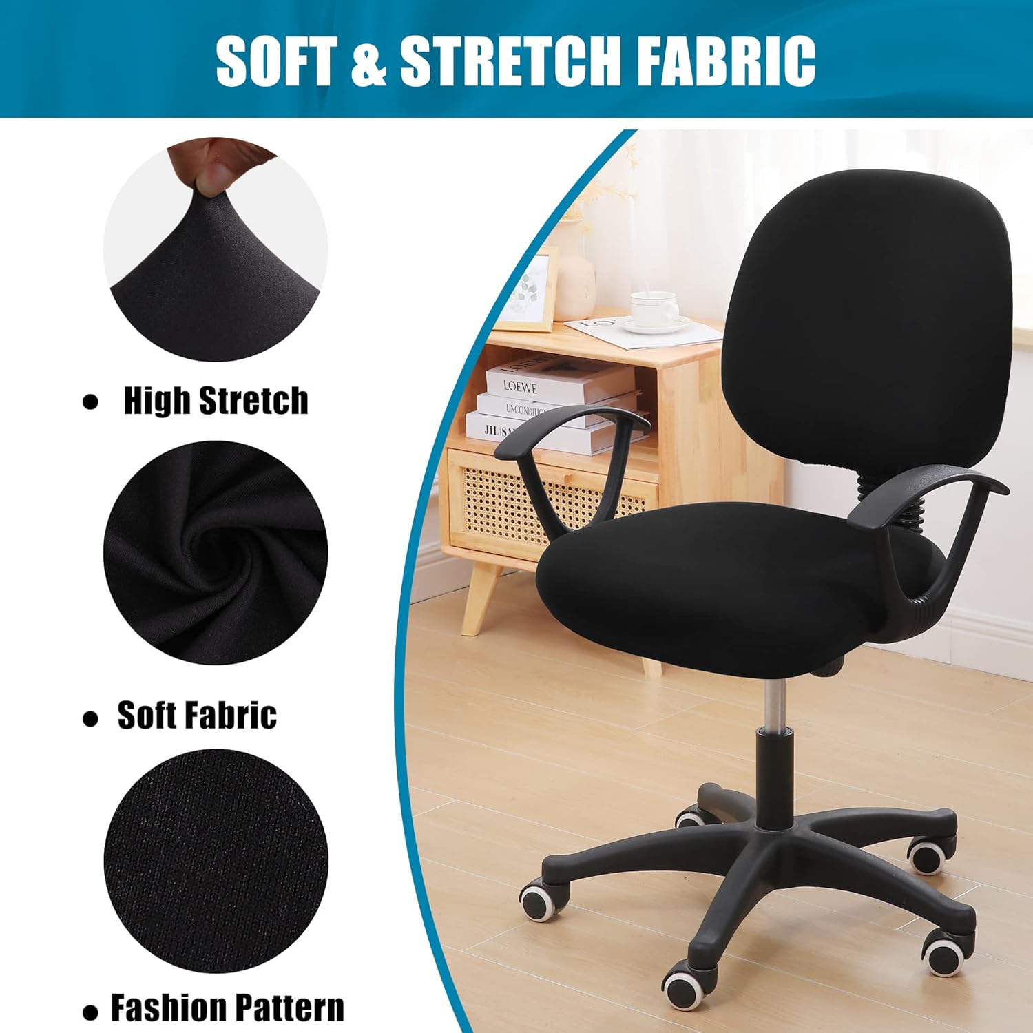 - [Stretchy & Soft Fabric] Printed office chair cover is made of 92% polyester and 8% spandex, soft and stretchable, sturdy and long-lasting, allowing for a long time to use. With high elasticity that quickly recovers and allows to fit perfectly for most office chairs