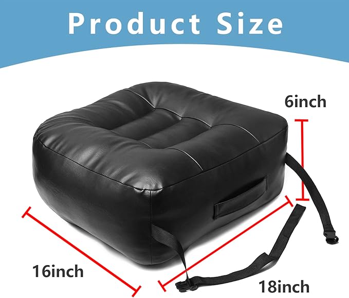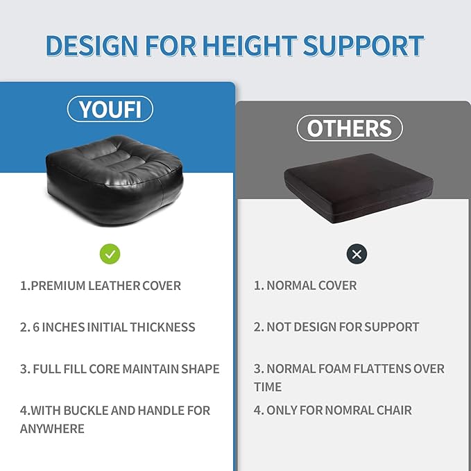 - [Super Thicken Seat Cushion] This Leather cushion is 18" x 16" x 6" which can solve the problems of old seat condition and insufficient working height. It is specially designed for the short people and people who need height cushion for comfy.