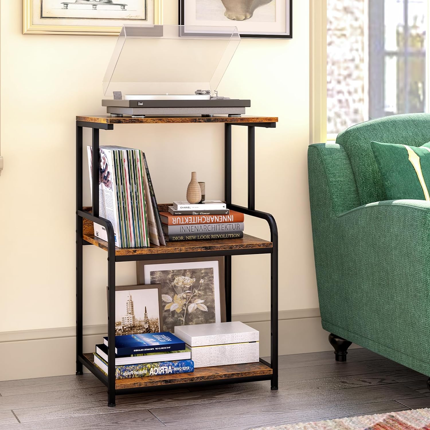 - 【Multi Scenario Use】:It's not just a printer stand. It can be a shelf with lots of books; A music station for record players and records; A kitchen cart for a microwave, POTS and pans; A side table for coffee and snacks. More uses are waiting to be discovered.