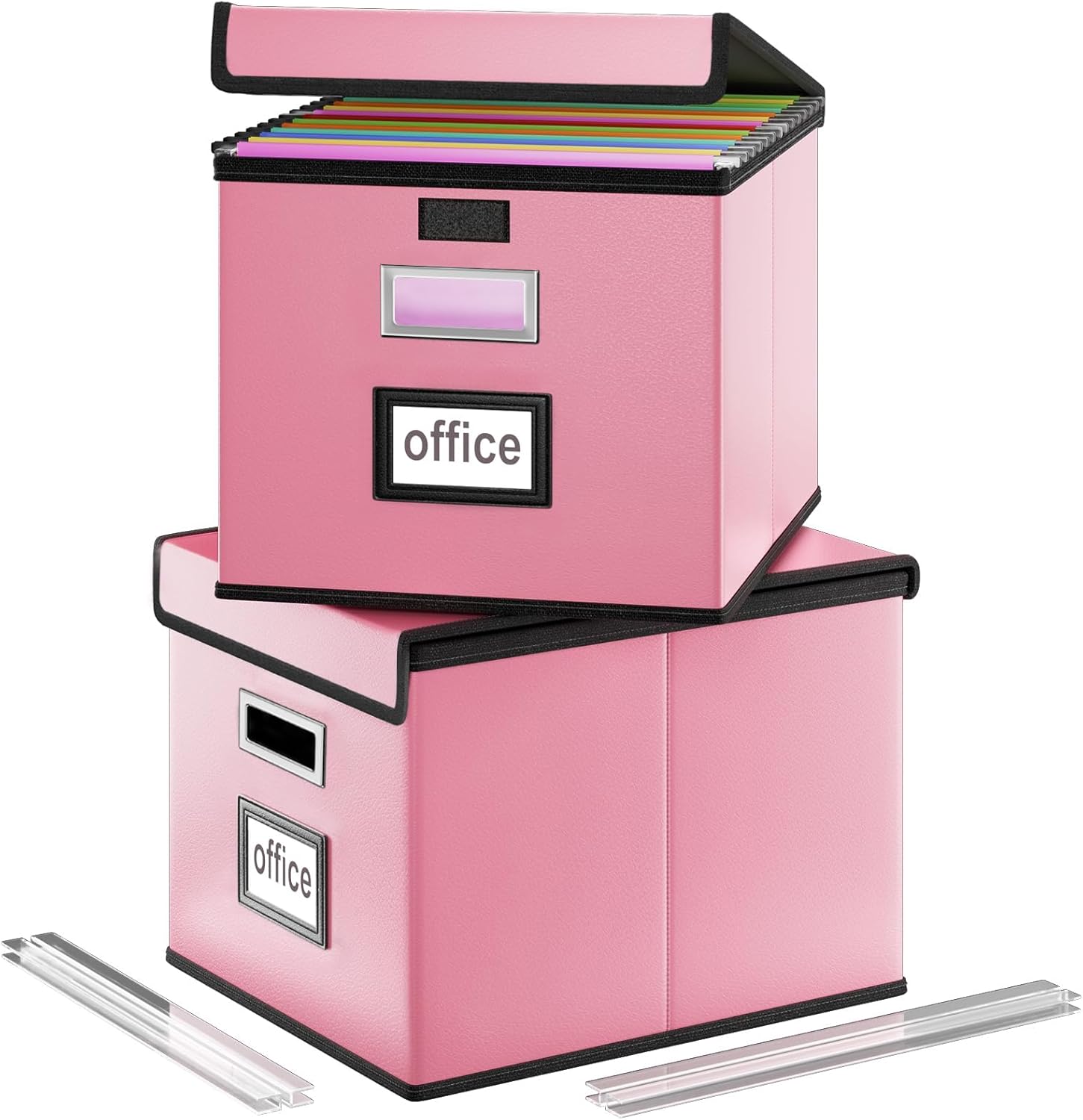 - Unique Functional Design - This file boxes both sides are equipped with practical PVP slide rails, which can not only prevent the two sides of the file storage box from loosening, but also facilitate the sliding of the file folder, which is very suitable for hanging file folders. The metal handles on both sides allow us to easily move the storage box, and the label slot on one side facilitates classification. Functional features and a beautiful design create the best filing box organizer.