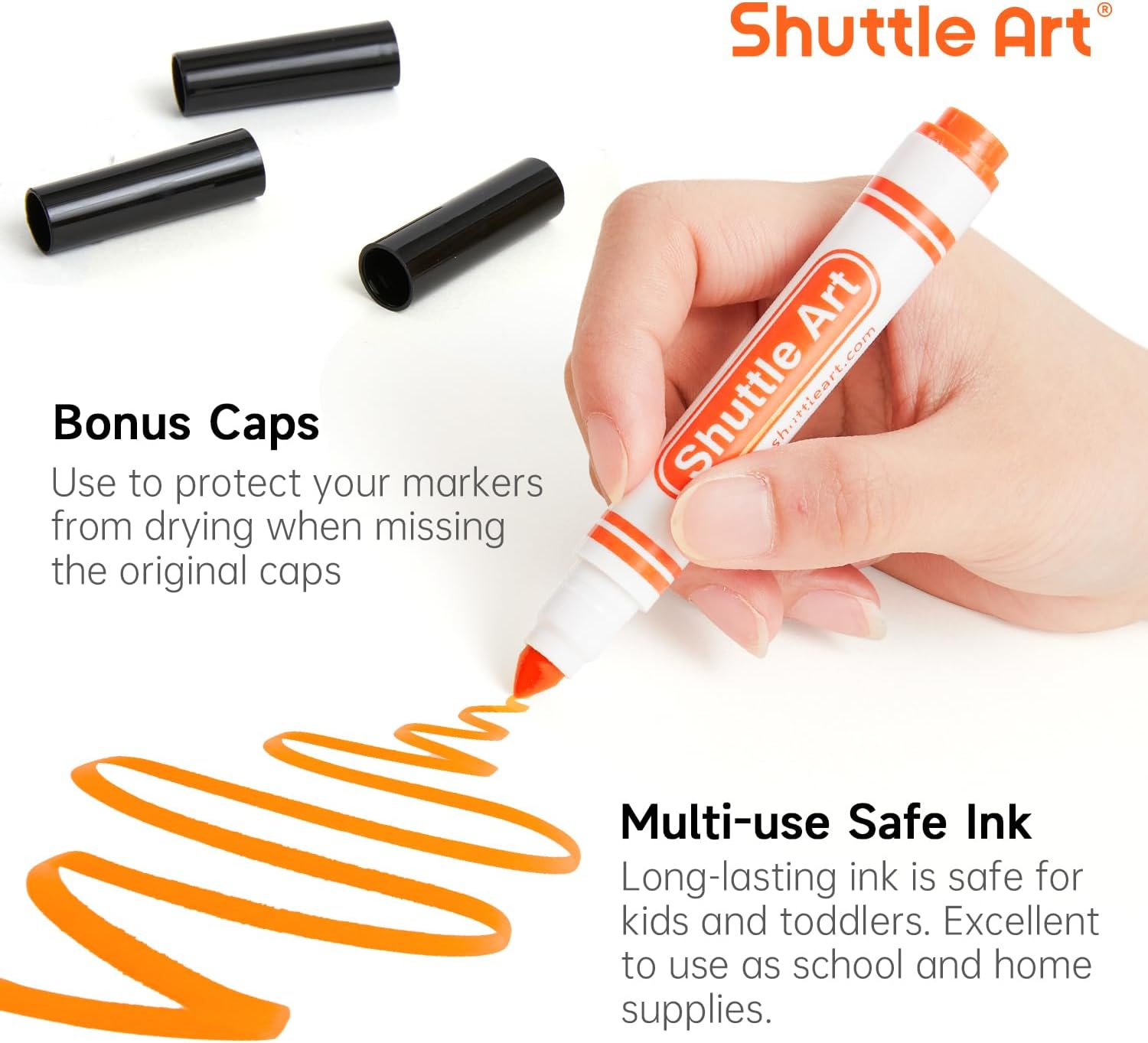Shuttle Art 304 Pack Washable Markers, 8 Colors Broad Line Markers, Separate Pack of 38, Conical Tip Marker Bulk with a Box, Home Classroom School Supplies for Toddlers Kids Adults Students Teachers
