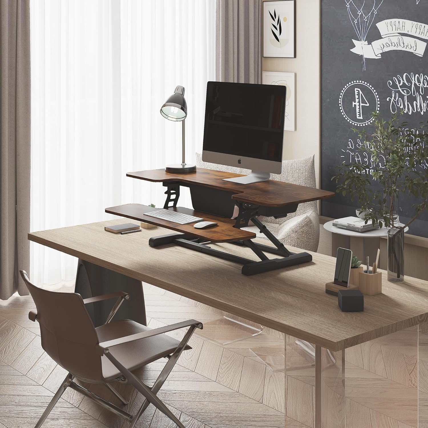 - Easy to Install - Our standing desk converters are designed for convenience, ready to use in minutes. Attach the keyboard tray to the desktop, then you can enjoy a sitting or standing workstation at the same time