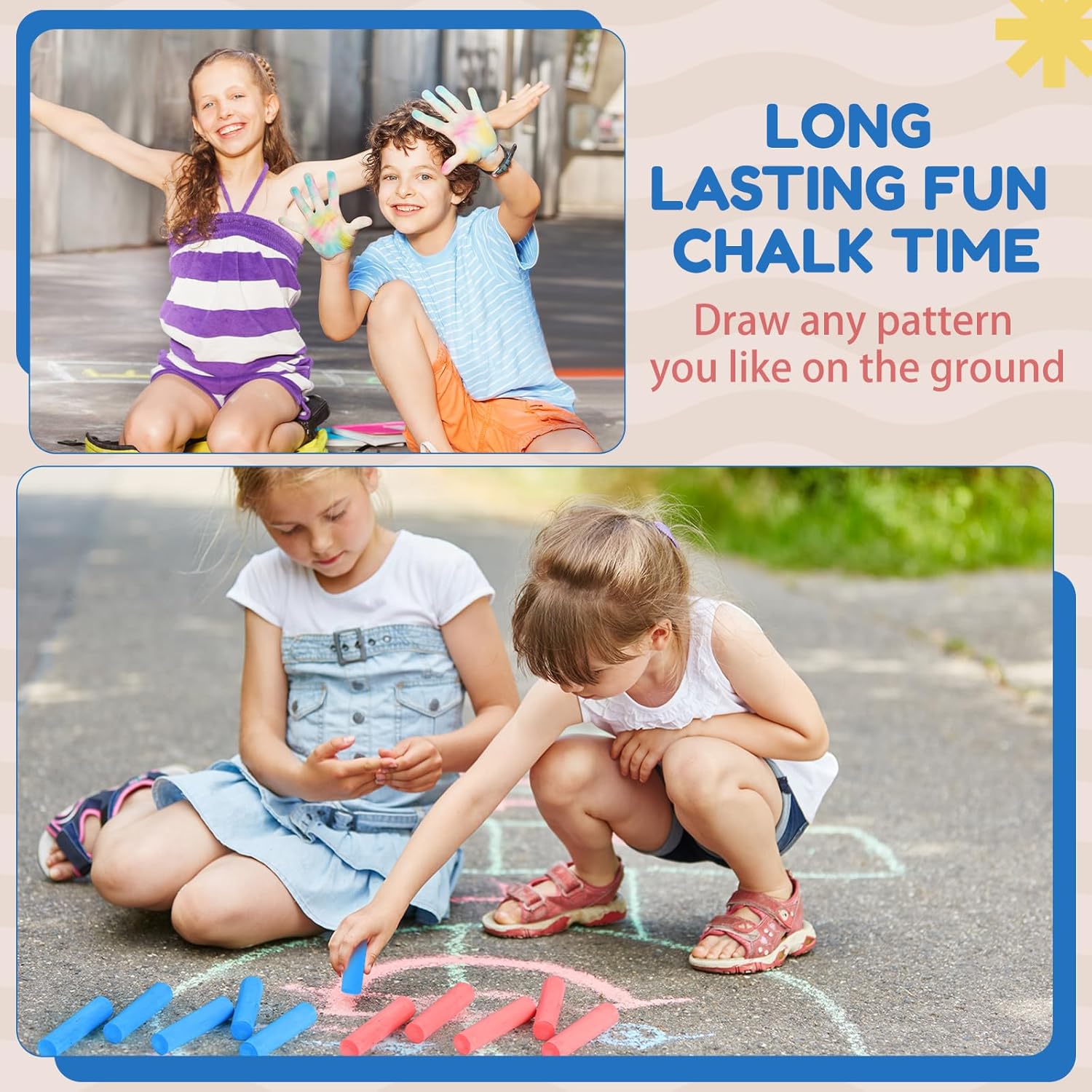- Widely Applicable: you can use these kids sidewalk chalks on various occasions, for drawing, painting, etc., and you can use them to mark the buildings, to DIY, to decorate your wall, to make some crafts, which will bring you a lot of fun