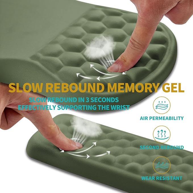 Hokafenle 2 in 1 Ergonomic Mouse Pad Wrist Support & Wrist Rest for Computer Keyboard Set, with Relieve Carpal Tunnel Pain Massage Bulge and Full Memory Gel Design (2In1 Set, Dark Green)
