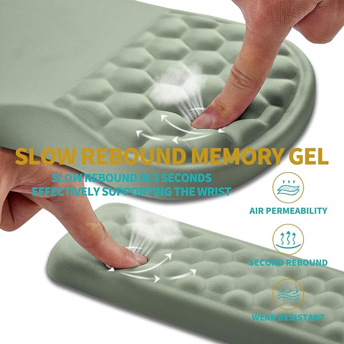 Hokafenle 2 in 1 Ergonomic Mouse Pad Wrist Support & Wrist Rest for Computer Keyboard Set, with Relieve Carpal Tunnel Pain Massage Bulge and Full Memory Gel Design (2In1 Set, Light Green)