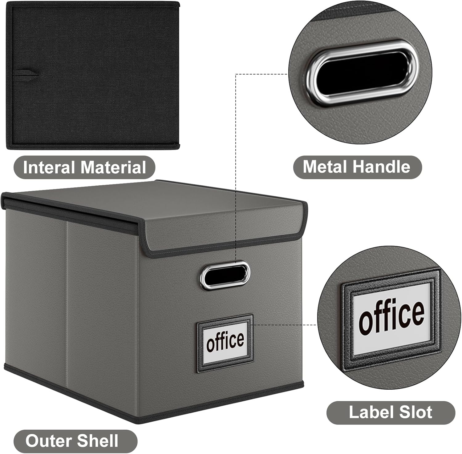 - Unique Functional Design - This file boxes both sides are equipped with practical PVP slide rails, which can not only prevent the two sides of the file storage box from loosening, but also facilitate the sliding of the file folder, which is very suitable for hanging file folders. The metal handles on both sides allow us to easily move the storage box, and the label slot on one side facilitates classification. Functional features and a beautiful design create the best filing box organizer.