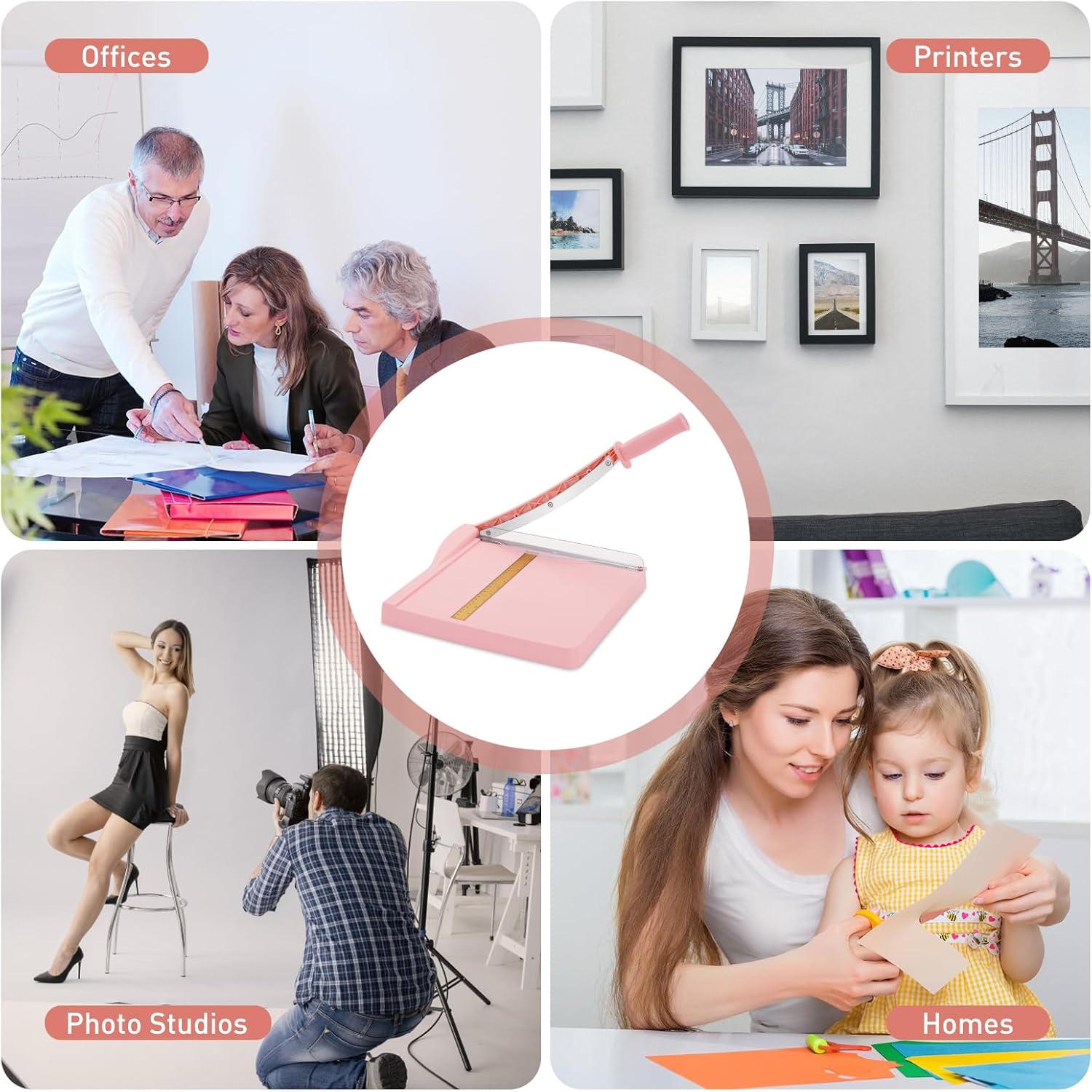 Paper Cutter, Paper Slicer with Safety Guard and Blade Lock, 12" Cut Length Guillotine Paper Cutter with 16 Sheet Capacity, Paper Cutters and Trimmers for Cardstock Cardboard (Pink)