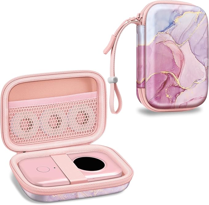 FINTIE Label Maker Case Compatible with Phomemo D30 D35, NELKO P21, SUPVAN E10, NIIMBOT D11 D110, JADENS D110, ORGSTA S001 - Portable Shockproof Hard Shell Label Printer Carrying Cover, Dreamy Marble