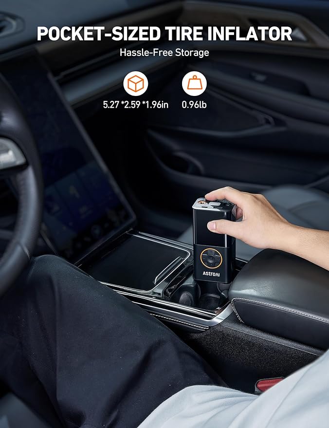 AstroAI L7 Tire Inflator Portable Air Compressor Cordless Mini Bike Pump with Digital Dual Values Display, 150 PSI Car Tires Air Pump with LED Lights&Pressure Gauge for Auto, Motorcycles, Bikes, Balls