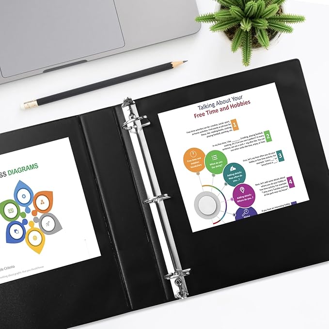 - 1-1/2" black binders hold us Letter size 8-1/2" x 11" paper, d ring can hold 300+ paper capcity, 6 packs.