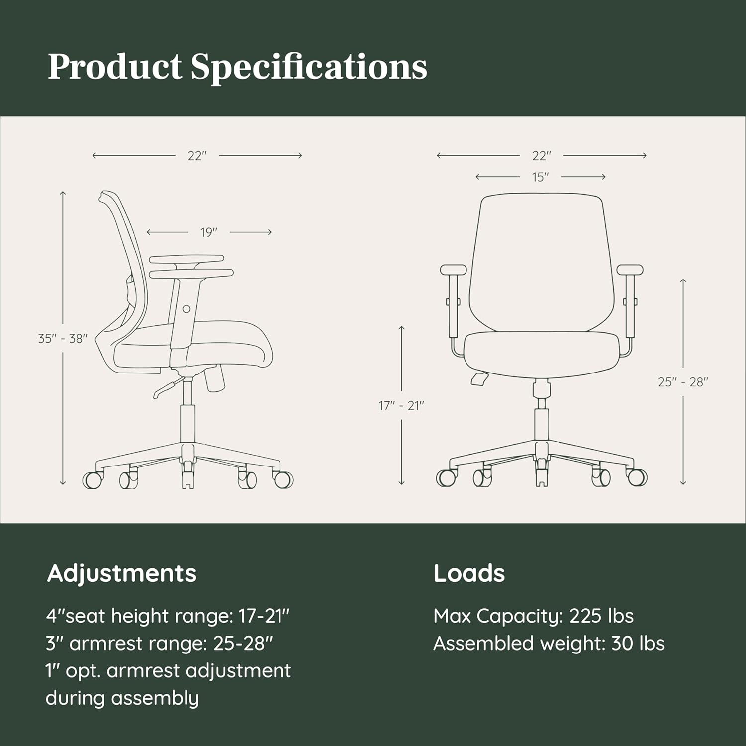 - Product Dimensions : 22"D x 22"W x 35"H