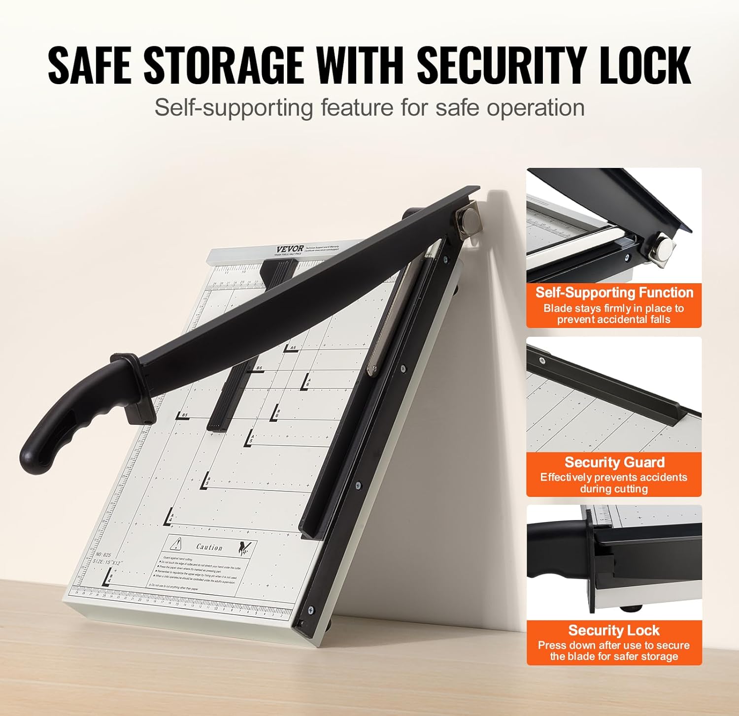 - Security First: Your security matters to us. Our paper cutter guillotine features a self-supporting blade design for secure and stable cutting. Plus, it comes with a guard rail and blade lock for peace of mind during use and storage.