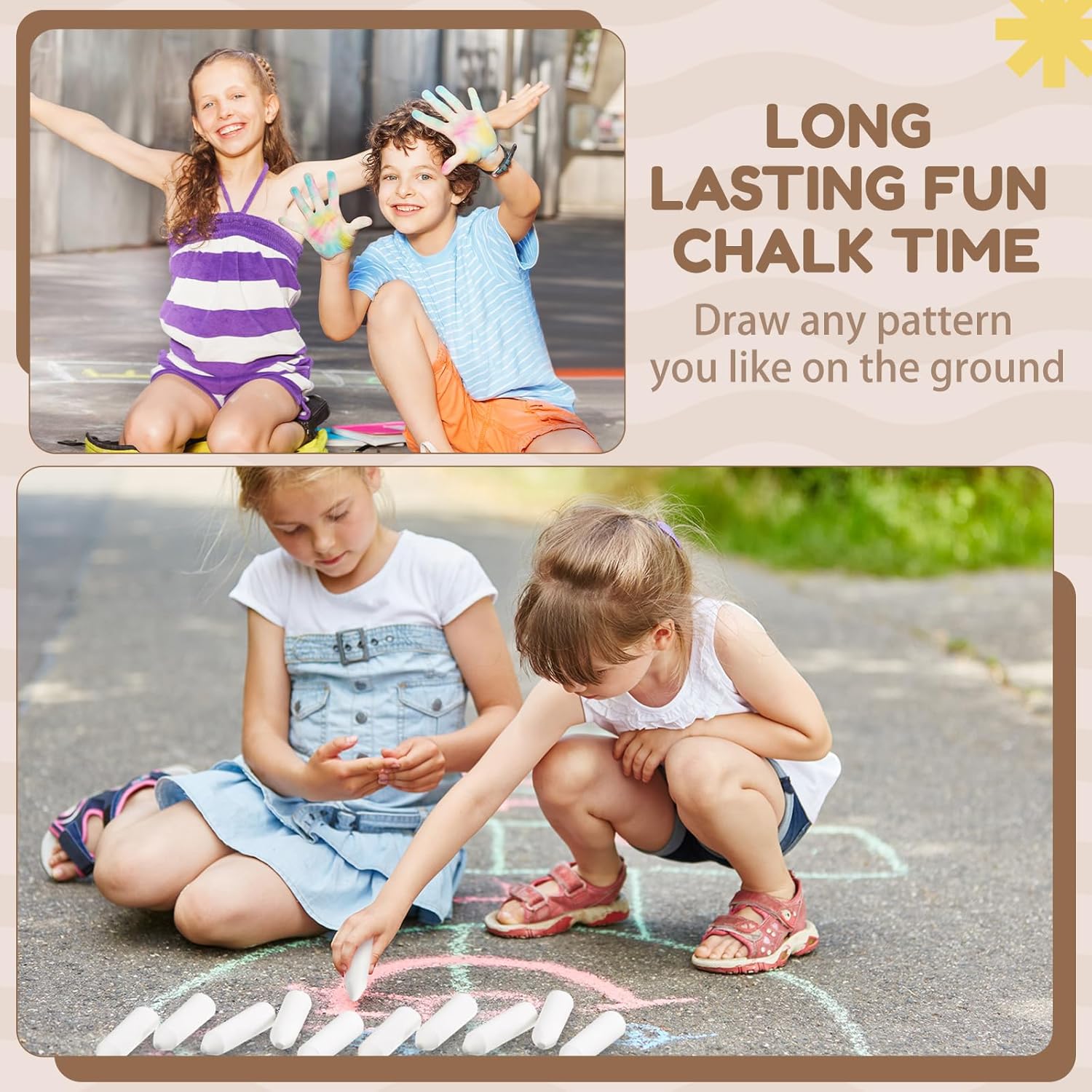 Fulmoon 40 Pcs Jumbo Sidewalk Chalk for Kids Outdoor Art Non Toxic Large Washable Street Chalk for Adults Drawing Painting Classroom(White,Sharp Style)