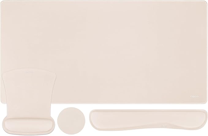 MOSISO Keyboard Mouse Pad Set, Large Gaming Mousepad&Keyboard Wrist Rest&Mouse Wrist Rest&Coaster, Ergonomic Non-Slip Mousepad&Easy Typing Cushion with Memory Foam for Home Office, Apricot