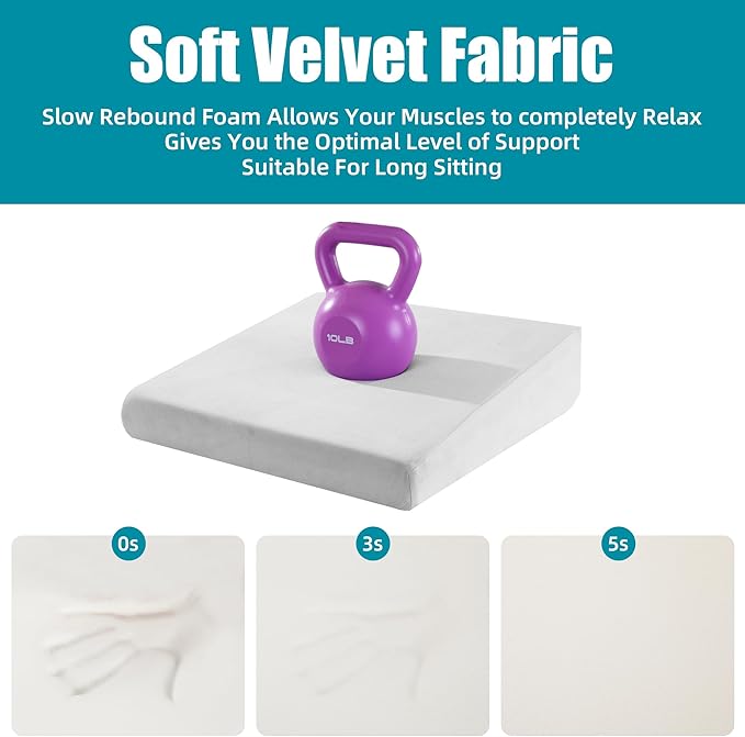 HOMBYS Wedge Recliner Seat Cushion for Long Sitting Chair, Cushion for Elderly Esay to Get Up,5" Thick 20"x20" Large Pressure Relief Seat Cushion for Recliner, Office, Car, Velvet & Foam,Light Grey