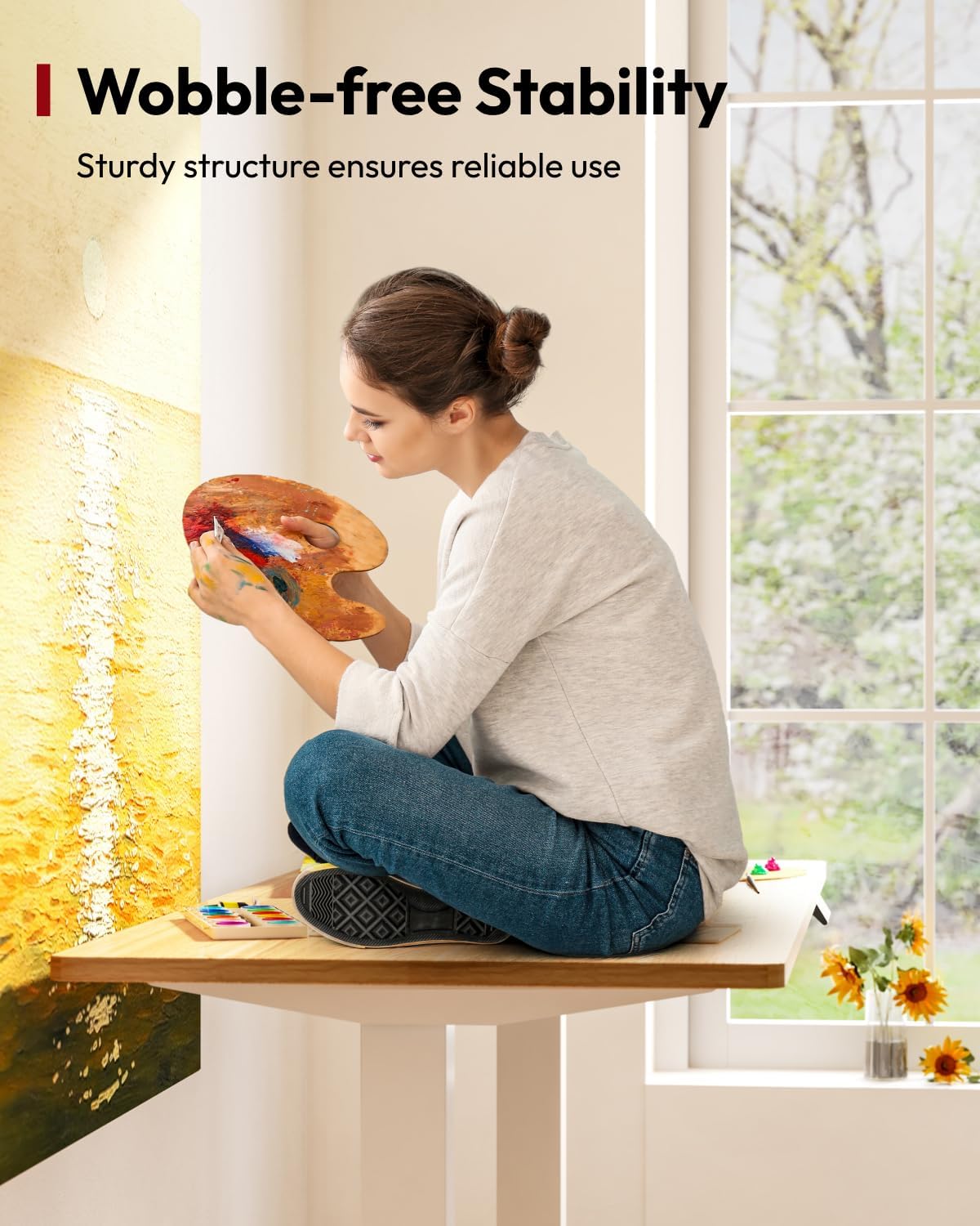 - Exceptional Stability: The sit stand desk is constructed with robust steel, ensuring exceptional stability and durability. The industrial-grade steel frame further reinforces its strength.