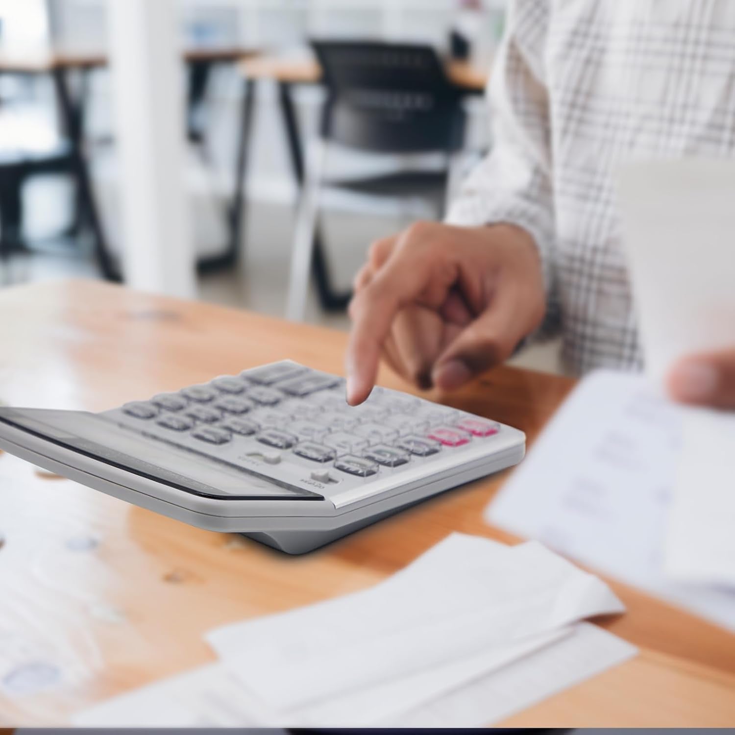 - 【Large LCD Display】The office calculator is equipped with huge LCD screen display clear 12-Digit big numbers.Desktop calculator tilted and angled display allows you to easily see your calculations without straining your eyes