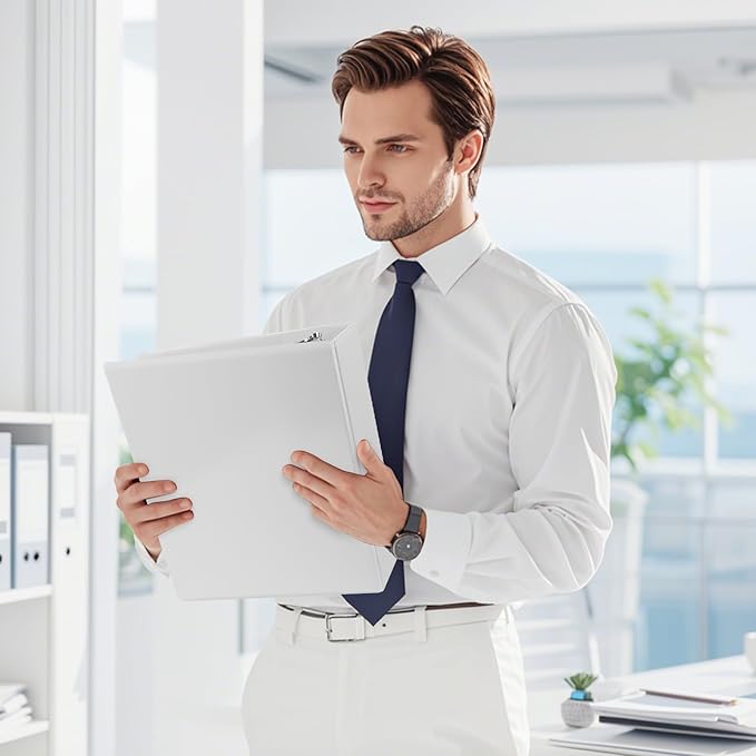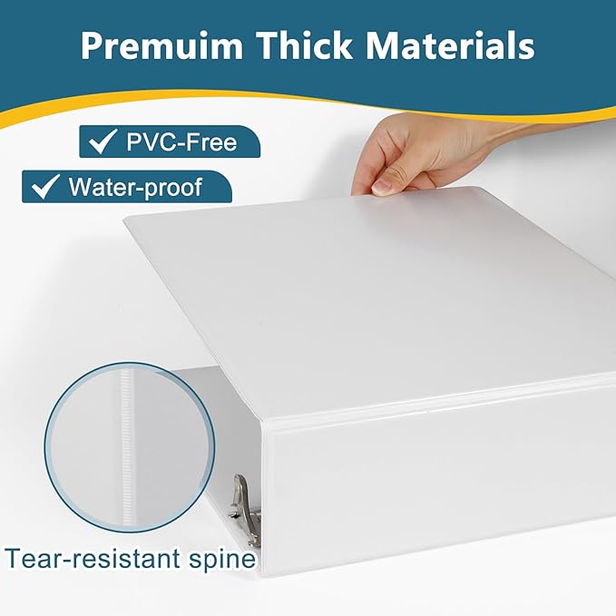 - 3" white binders hold us Letter size 8-1/2" x 11" paper, slant-d ring can hold 725+ paper capcity, 6 packs.