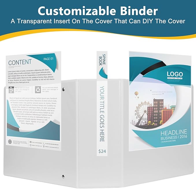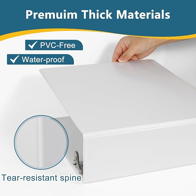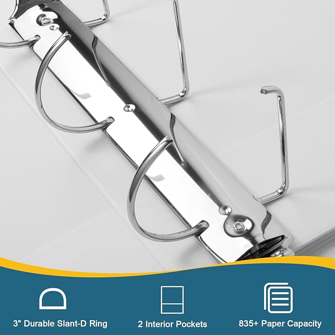 CIXILDTS 4-Inch 3 Ring Binder, Standard 4" Slant-D Ring Binder Fit Letter Size Paper, Presentation View Binders, White, 6-Pack
