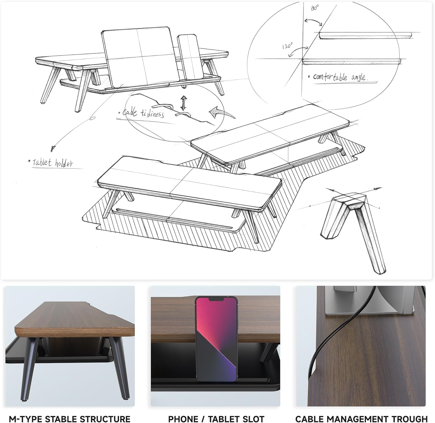 - 【Avoiding Shoulder/Neck Pain】Ergonomic design with 5.7 inches height of the desk stand to keep your screen at the best position, avoiding cervical spine problems caused by long-term bow in the process of working.