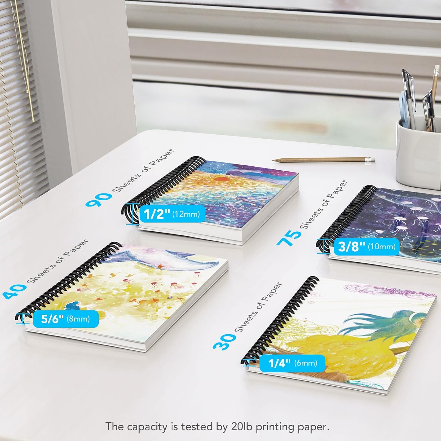 - SHEET CAPACITY: 75 sheets, Spine Diameter: 10mm(3/8 inch), Spine Type: Coils, Package Contain: Pack of 100