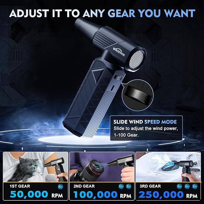 - New Pulley-Mode Air Duster: Upgraded with 3-gear and pulley modes for adjustable airflow. Smooth operation and ergonomic handle for comfort. Choose your power, control the breeze