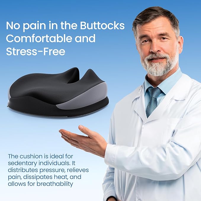 - š ćRelieves Pain and Improves PosturećThe ergonomic "W" shape of our cushion provides support and comfort while reducing pressure on your lower back, waist, and hips. It also helps improve your posture, reducing the risk of pain and discomfort.