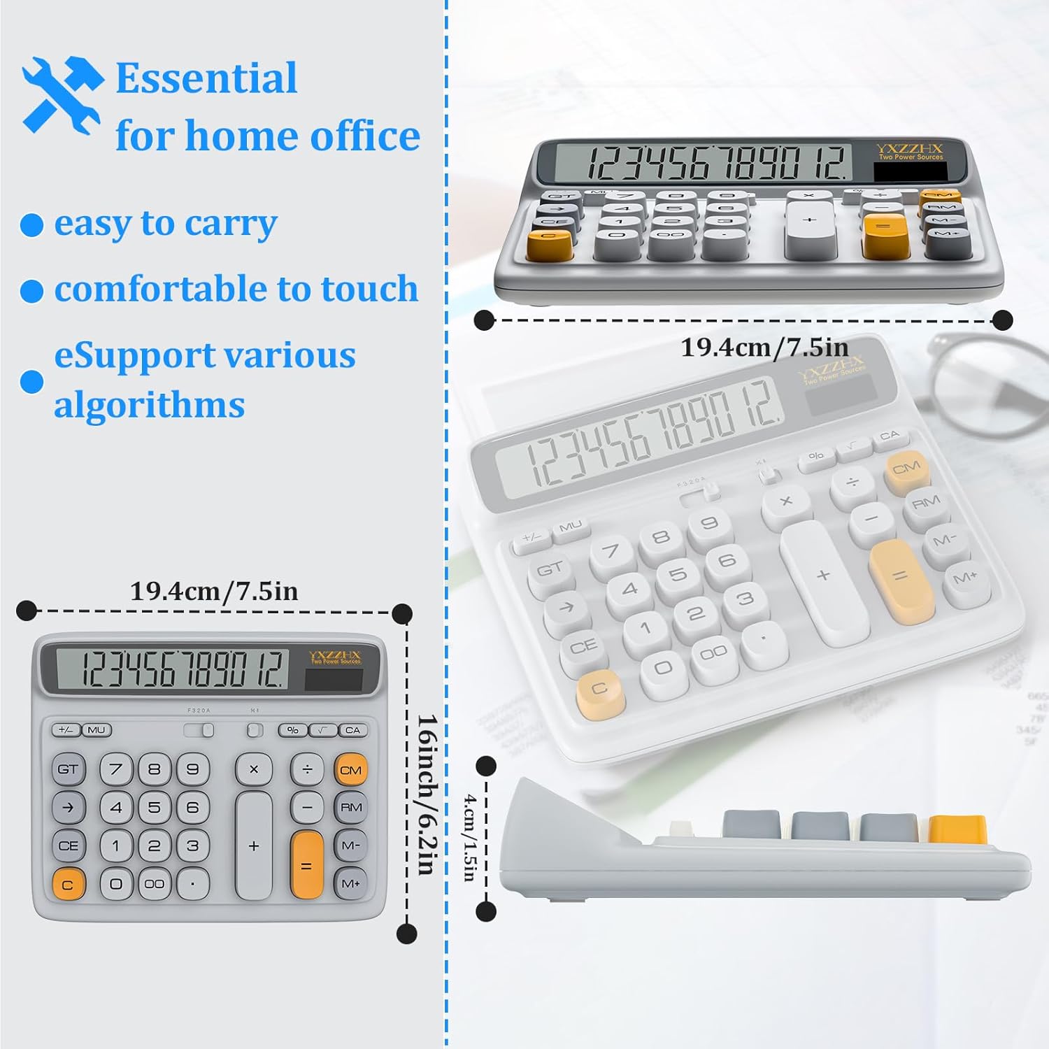 Desktop Calculator with Extra Large 5-Inch LCD Display, 12-Digit Two Way Power Solar & Battery Office Calculator with Big Buttons for Business, Accounting & Home Use(Grey)
