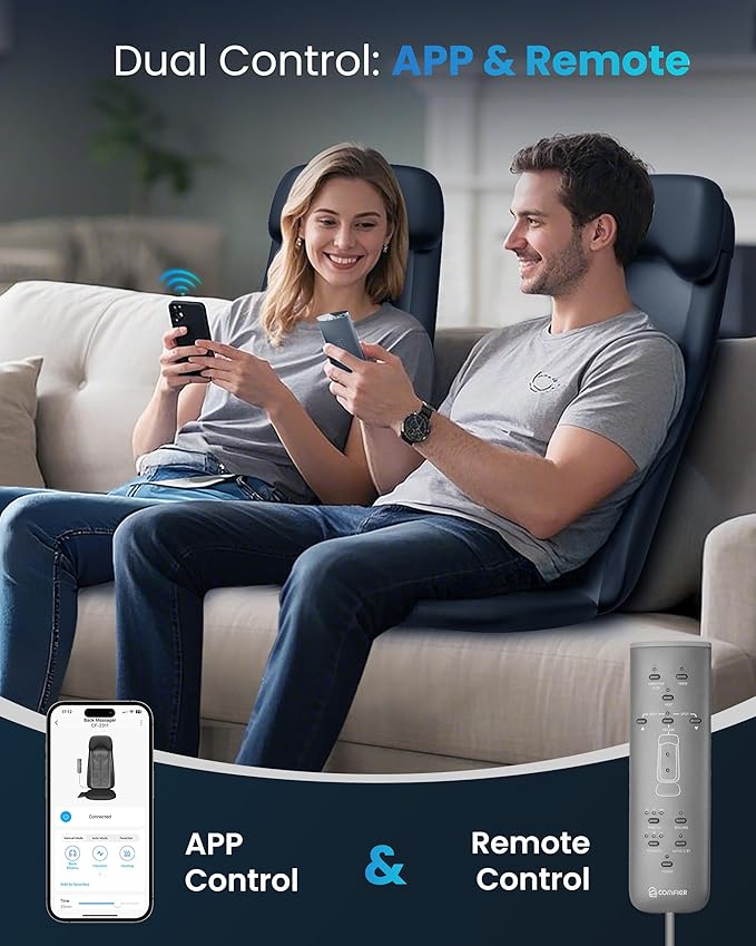 - App-Controlled Customization at Your Fingertips:Whether you prefer using the intuitive control panel or Bluetooth-connected app, you can easily personalize your massage settings with massage chair pad. Select full, upper, lower, or targeted back zones with the spot function. Choose between two auto programs or manually tailor the massage—anytime, anywhere from your smartphone.