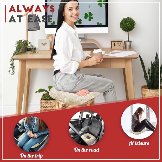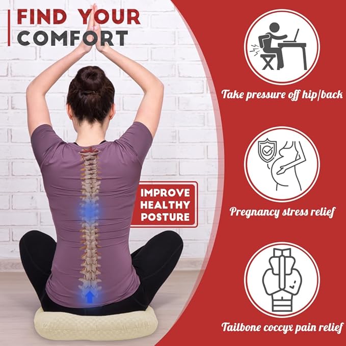 - Safe & Healthy Sitting - The seat pillow helps relieve pressure from your back or pelvic region while sitting for extended periods, also an ideal solution for people suffering from hemorrhoids, bed sores, broken tailbones, sciatica, coccyx pain, during pregnancies or post injuries.