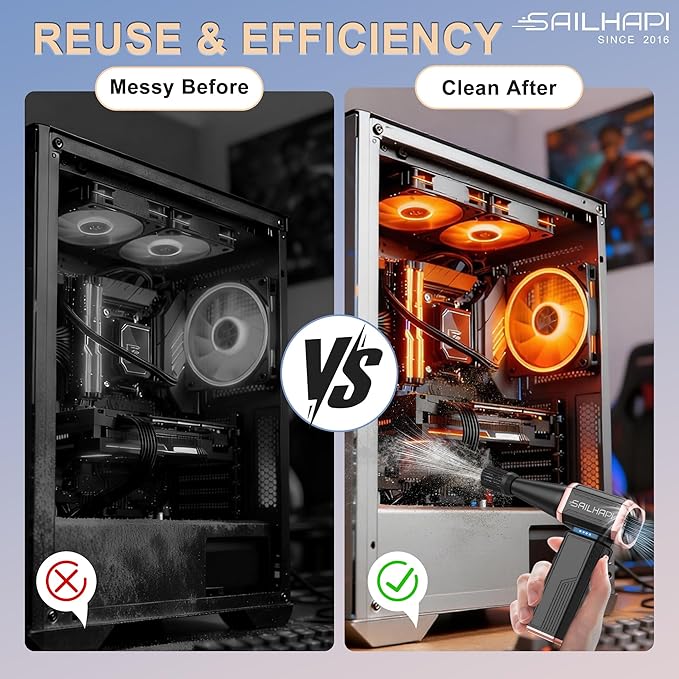 - Save Your Money: Stop throwing money away! A single charge powers over 1000+ uses, effectively replacing a mountain of disposable can air duster spray. We built this reusable electric duster with a durable brushless motor to be your last dusting solution, not another piece of junk that breaks