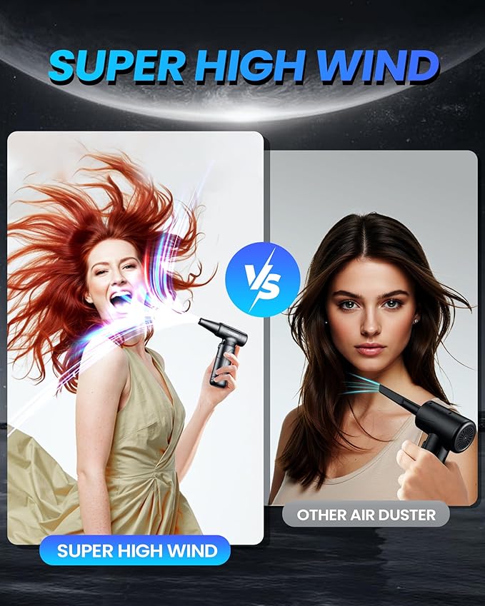 - Air dusters for cleaning【 Versatile Cleaning Companion for EveryTask 】-Blower ideal for various uses including PC dusting, keyboard cleaning, car cleaning kits, electric leaf blower, car detailing supplies, snow blower, fan, air broom and outdoor maintenance, and automobile care, making it a versatile addition to your cleaning tool kit.